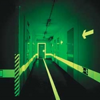 Esta sinalização possui base em plástico e é adesivada com película com capacidade de armazenar a luz ambiente durante o dia e refletir esta luz a noite, ideal para sinalizar rotas de fuga, saída de emergência, extintores e outros equipamentos de combate a incêndios, laboratórios etc.